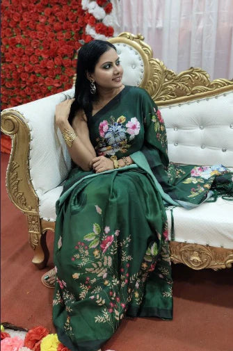 Elegant Linen Digital Print Saree | Shop Latest Designs