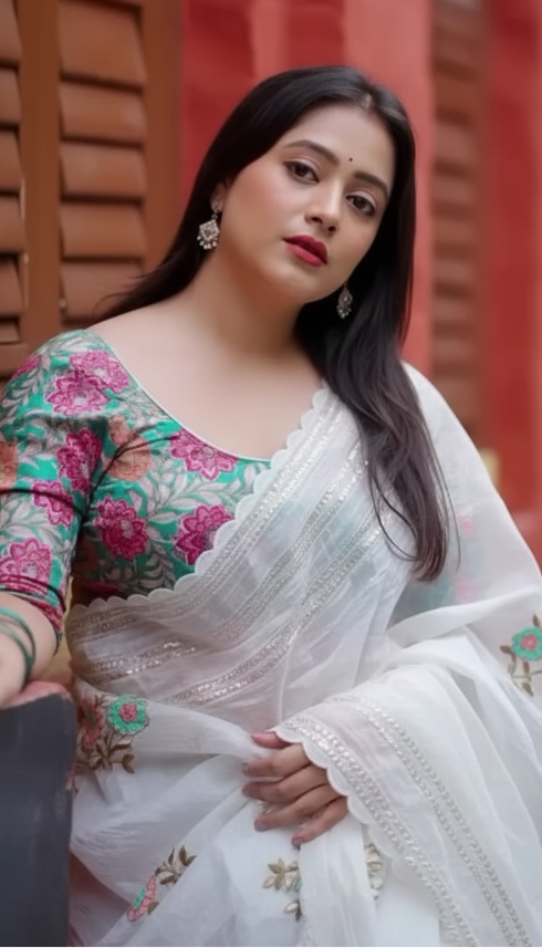 Organza Saree Blouse Designs | White Embroidered Saree Online
